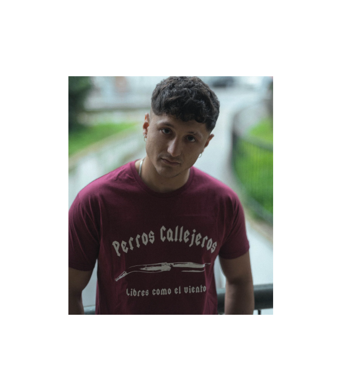 Aquí la tienes en color granate apagado. Si, es la clásica camiseta de la navaja en el pecho.