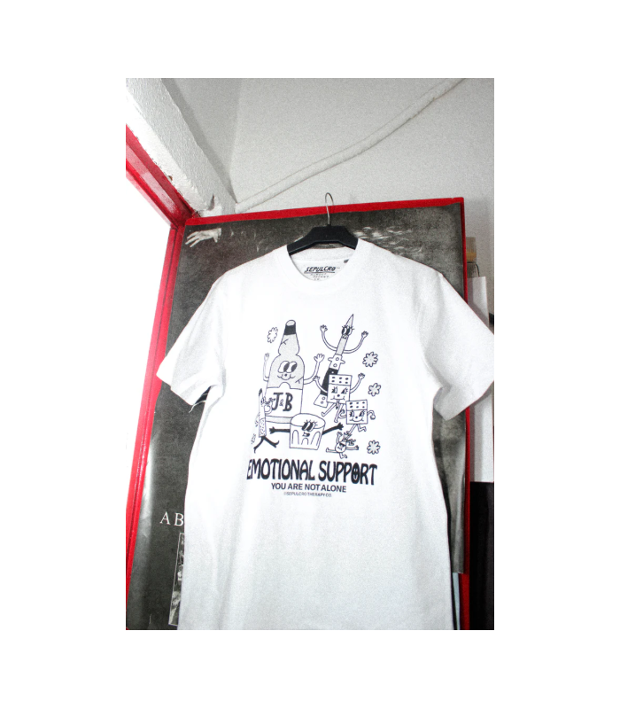 Screenprinted by hand with eco-friendly and soft to the touch water-based ink on a white 100% cotton classic unisex fit t-shirt (200gr).