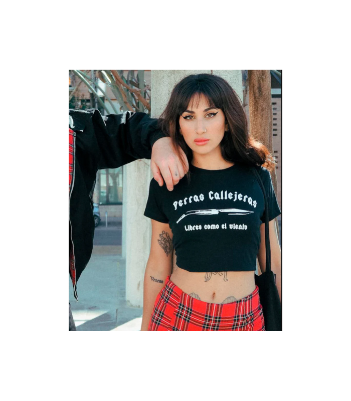 Edición limitada del mítico diseño Perras callejeras con la navaja en estilo camiseta entallada corta de mujer.