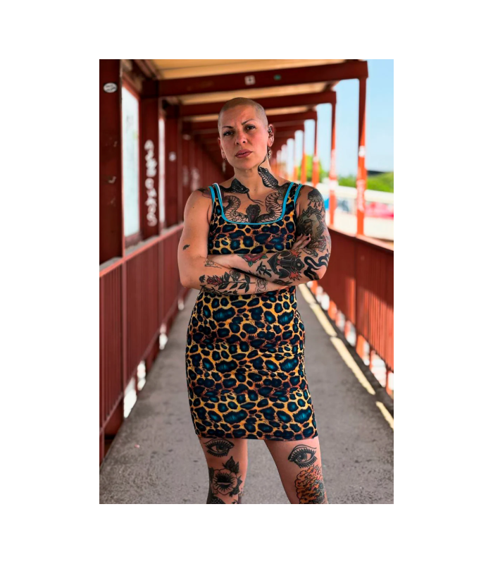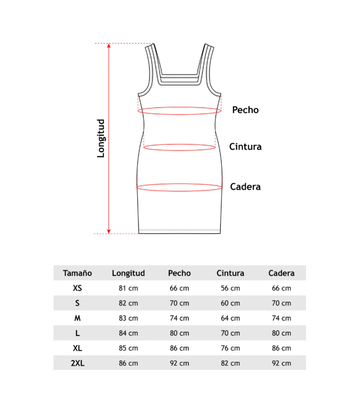 Costuras superiores de tirantes y escote rematadas con vivos en licra de poliester.