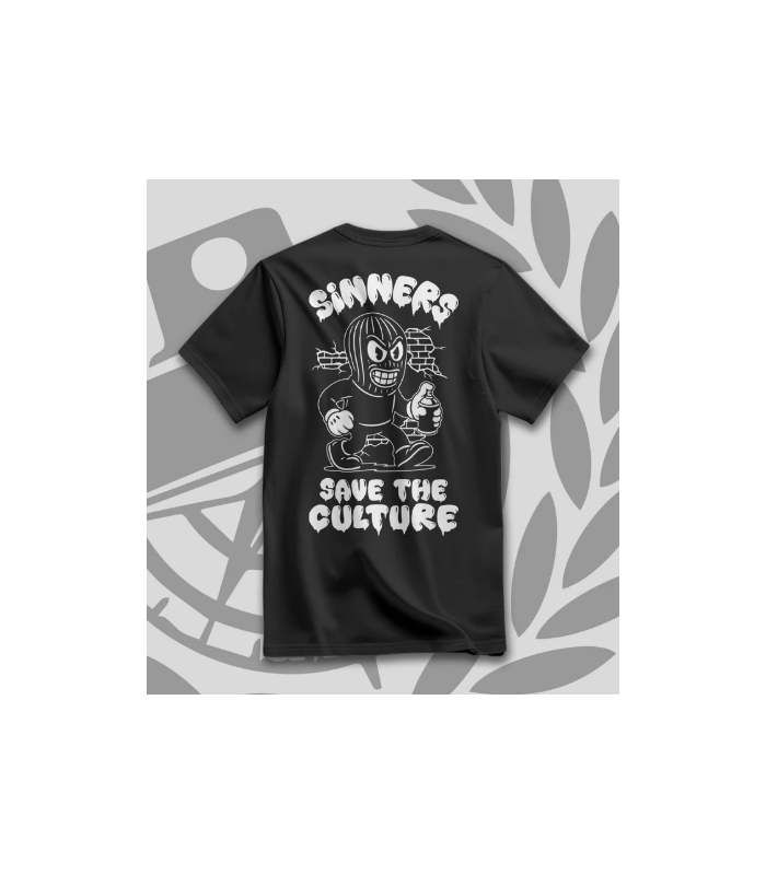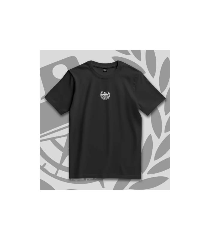 Camiseta negra 100% algodón de 180 g/m² con serigrafia de máxima calidad a una tintas en la espalda y una en el pecho.