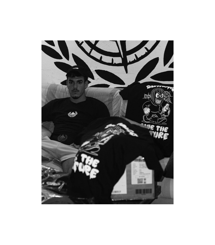 Camiseta BLACK con impresión WHITE en parte frontal y trasera.